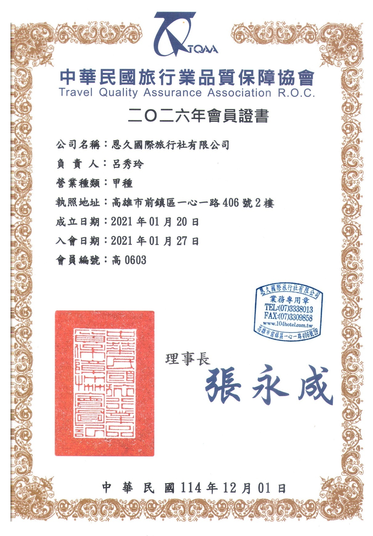 恩久國際旅行社有限公司 服務專線:電話(07)333-8013 Line @twi0577a (代表)