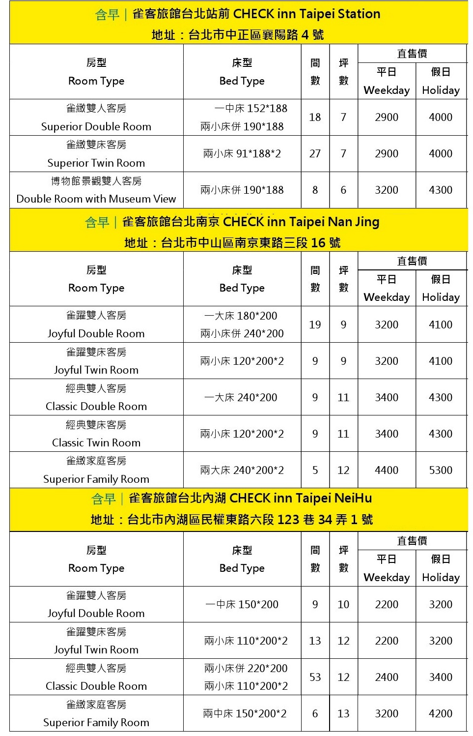 雀客旅館台北站前 CHECK inn Taipei Station 飯店訂房特惠價格
