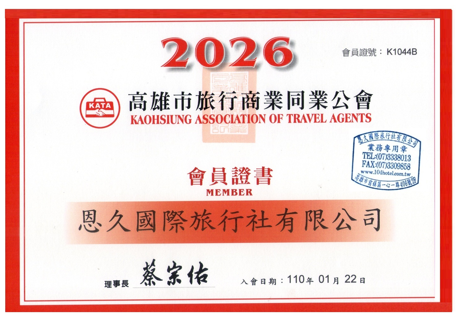 恩久國際旅行社有限公司 服務專線:電話(07)333-8013 Line @twi0577a (代表)