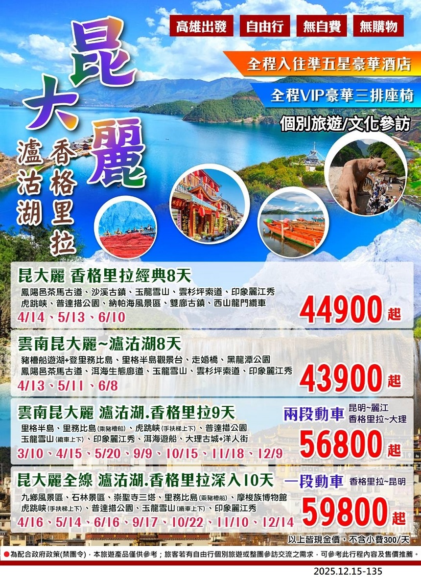 5. ¯S®íÀ\¹ªÌ¡]¦p¯À¹À\¡^¡G¤¤°ê¤j³°¦a°Ï¯À¹²i¶¹¤âÃÀ¤ô·Ç»P¥xÆW¸¨®t¬Æ¤j¡A¦U¹ÎÅéÀ\ÆU¬Ò¥H²«Kªºª£«Cµæ2¡ã3¹D¬°¥D¡A·q§i¯À¹«È¤H¦p«e©¹¤¤°ê®È¹C¡A½Ð¥ý¦Û¦æ·Ç³Æ¯À¹ÅøÀY©ÎªwÄѵ¥¡A¥H³Æ¤£®É¤§»Ý¡C¬G·q§i¯À¹¶Q»«¡A·sæ¯À¹À\¤§¦w±Æ¡AµLªk¦p¦P¦b¥xÆW¯ëÂ×´I¥B¦hÅܤơA¬G«ØÄ³¯À¹¶Q»«¯à¦h¦h¨£½Ì¨Ã¦Û¦æ·Ç³Æ¯À¹ÅøÀY©ÎªwÄѵ¥¡A¥H³Æ¤£®É¤§»Ý¡C