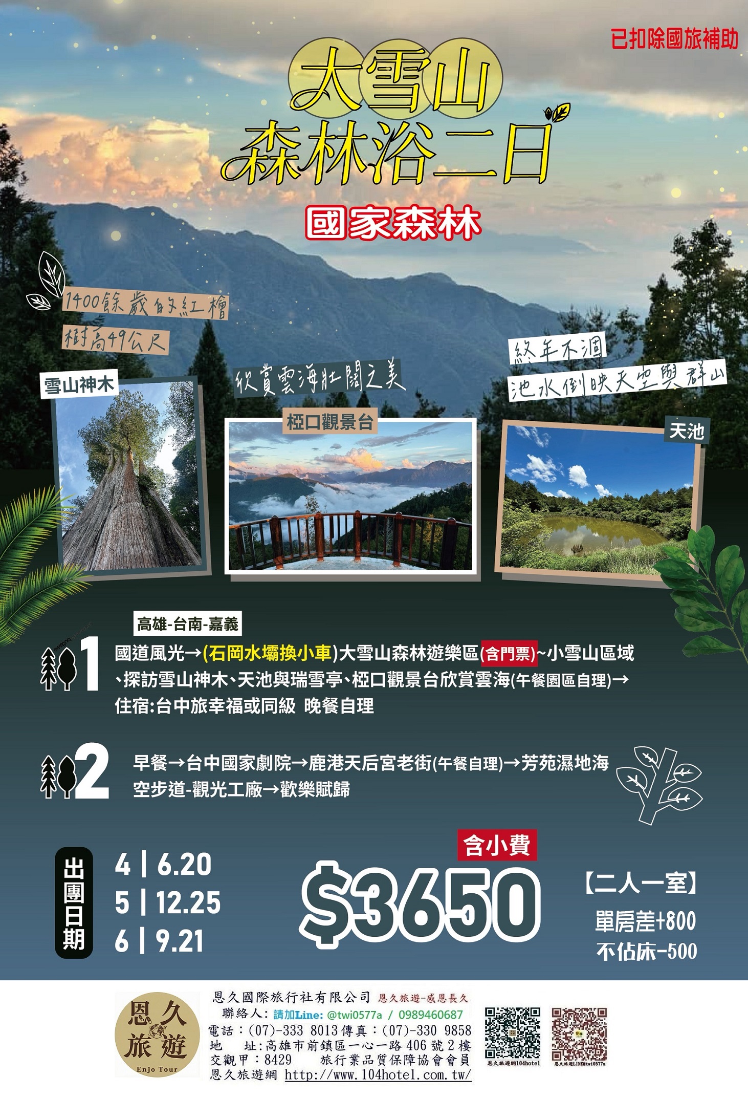 恩久旅遊~感恩長久成為好友∼我們將不定期提供您最新的旅遊優惠訊息...Line好康 : @twi0577a