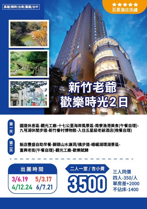 國內北部旅遊 五星酒店洗禮新竹老爺歡樂時光二日